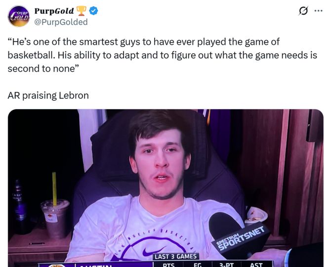 对此,赛后雷迪克称赞道:“勒布朗渴望胜利,他愿意尽一切可能帮助球队赢球,哪怕角色有所调整,在东契奇加盟后,他已经做出了不少的牺牲,但他还是明白让东契奇和里夫斯有更多持球时间的重要性,这说明了他对球队的关心程度,以及对身旁队友的重视。”