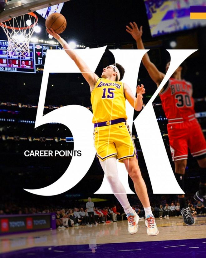 在东里两人合砍81分的带领下,湖人队首发5人合砍夸张的137分,高居NBA历史第四,其中东契奇51分、里夫斯30分、艾顿23分、詹姆斯18分、八村15分,这让湖人全场拿到142分创造本赛季单场第二高分。