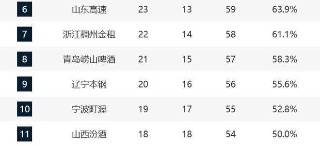 至于江苏、天津,他们肯定都无缘了,因为落后了5个胜场。四川则36连败了。