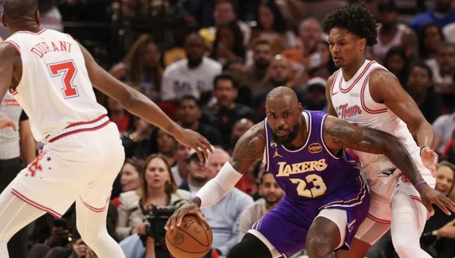 相比湖人队,火箭队的防守体系更加的完善,阿门-汤普森,小史密斯,杜兰特,史密斯,都有着极强的单防,换防能力,如果没有东契奇和里夫斯的话,火箭的防守资源完全可以集中在切断詹姆斯分球路线方便。