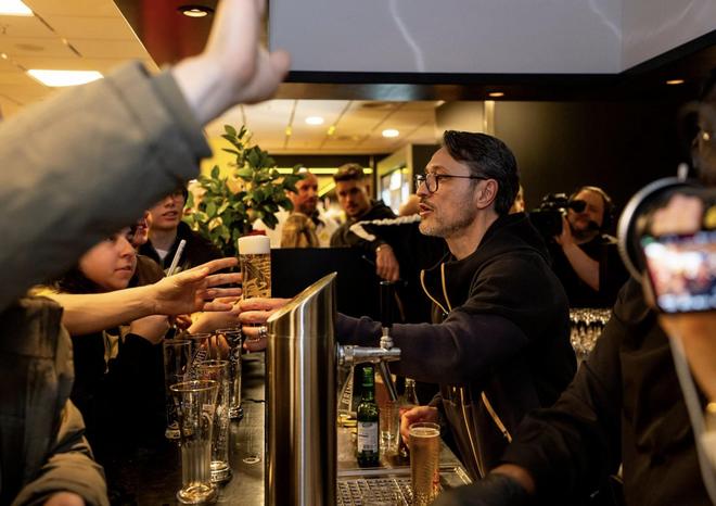 活动现场趣味十足,科瓦奇在吧台前问道:“还想来一杯吗?”只见他熟练地操作生啤水龙头,调整酒杯高度,泡沫恰到好处地升至杯口。“泡沫必须非常丰富,”科瓦奇用训练有素的眼光调整杯子。他曾在酒吧工作过,短暂的瞬间,他不再只是主教练,而像一位酒吧老板般亲切可接近。