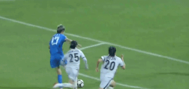 随后,视频助理裁判介入判罚,并且要求主裁判回看慢镜头。从慢镜头来看,这次判罚存在两个争议,首先是姚伟后场停球时是否手球,其次则是水原球员是否触球以及邓梦晔是否越位。