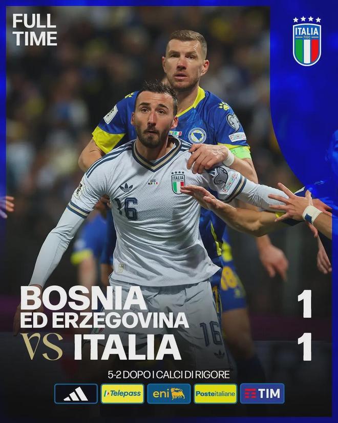 当巴斯托尼在第41分钟的那次鲁莽放铲划破泽尼察的夜空,一张红牌不仅改变了一场比赛的走向,更将一个足球大国的尊严钉在了耻辱柱上。1-1,点球大战1-4,意大利被波黑挡在2026年世界杯门外。这不是新闻,这是噩梦的第三次重演——2018、2022、2026,连续三届世界杯,蓝衣军团的名字从正赛名单中消失。