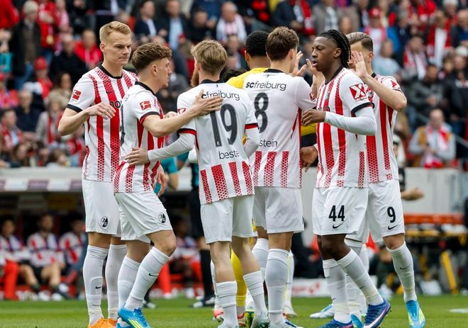 下半场易边再战。第46分钟,拜仁丢球了!曼赞比在前场带球不断内切,随即起脚劲射。皮球像炮弹一样钻入球门。诺伊尔来不及扑救,眼睁睁看着皮球钻入球门。弗赖堡取得领先。6分钟后,霍勒获得绝佳机会,他在门前的射门竟然踢飞了。紧接着,霍勒再次获得良机,这一次他单刀低射,竟然踢偏了。