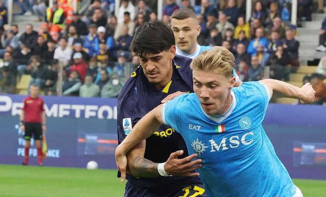 本场比赛那不勒斯排出了3421阵型。霍伊伦顶在最前面。麦克托米奈和德布劳内在他身后。斯皮纳佐拉、洛博特卡、安古伊萨和波利塔诺4中场联袂出击。马蒂亚斯-奥利韦拉、布翁焦尔诺和胡安-热苏斯3后卫首发出战。瓦尼亚-米林科维奇-萨维奇担任首发门将。焦瓦内、阿利松-桑托斯和埃尔马斯坐在替补席待命。