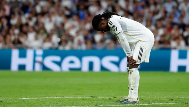 易边再战,拜仁加强了攻势,而皇马也用卡马文加换下了边锋卜拉欣迪亚斯,主帅阿伟洛亚的意图是用他来加强中后场的防守。不过出场后不久,卡马文加就因为防守犯规吃到一张黄牌。而在比赛的第86分钟,他在前场防守中放倒了哈里凯恩,主裁判起初只判罚了犯规并没有出牌,但卡马文加鬼使神差抱起皮球就跑,试图阻碍拜仁开出任意球。这下,被激怒的主裁判终于出示了黄牌,卡马文加也两黄变一红被罚出场外。